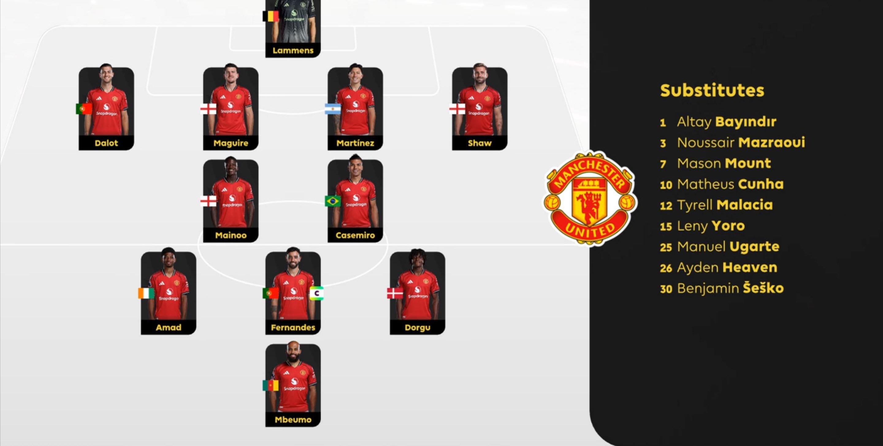 足球比赛,终归用结果说话,只要赢球了,那就什么都好说,这个道理我们非常清楚,所以这一体系当然可以被认为是正常且健康的,可以长时间使用,由此就可以推论,现在的首发11人,就是卡里克视角下的曼联最强11人。
